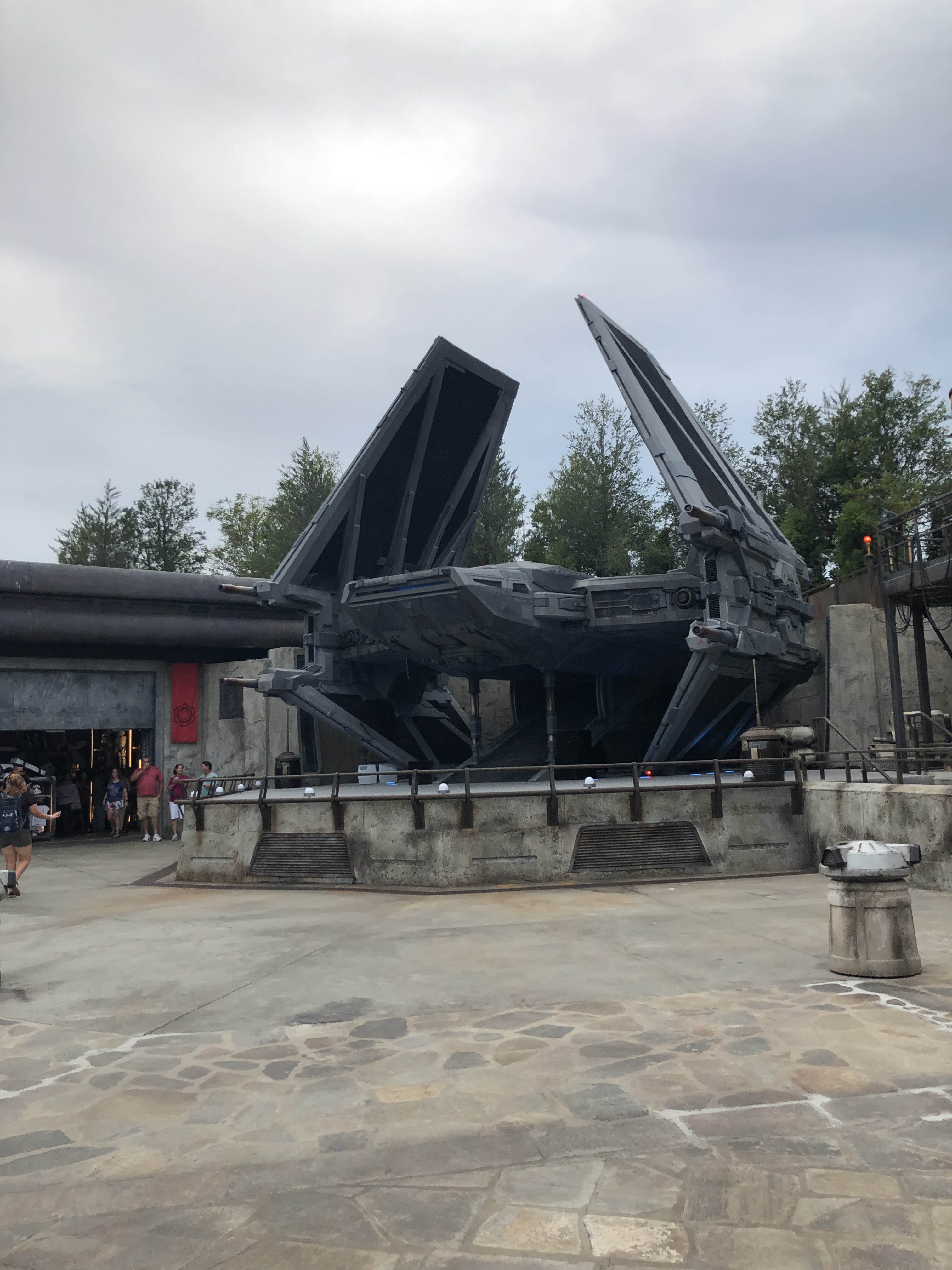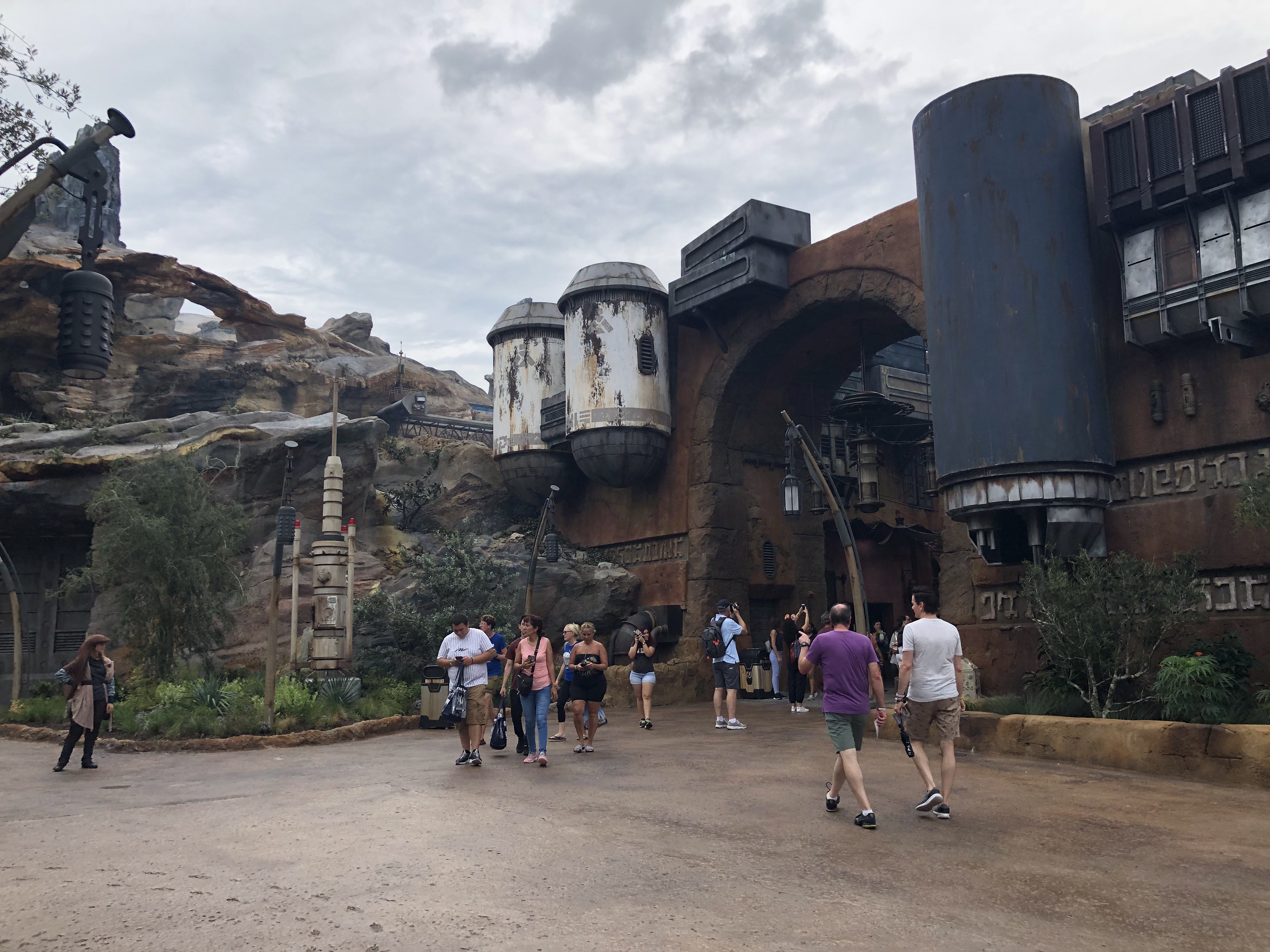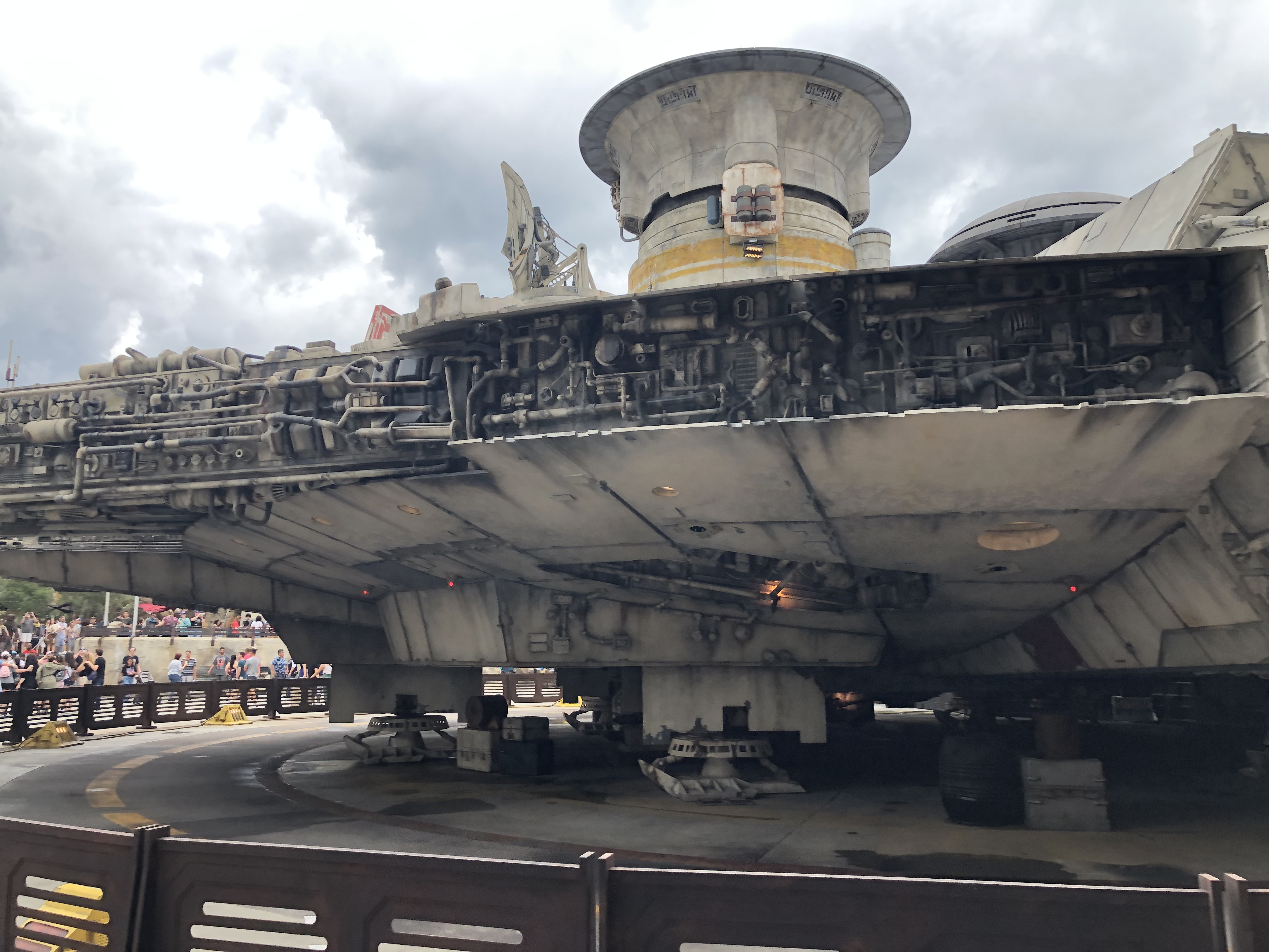 After some photos and exploring we turned the corner to the focal piece of the land, the number one photo spot and what everyone wants to see. The millennium falcon. It was huge and really incredible. And yes we did go and get photos out in front of it first. Then it was time to do what we had all been waiting for, join the queue for Millennium Falcon: Smugglers Run.