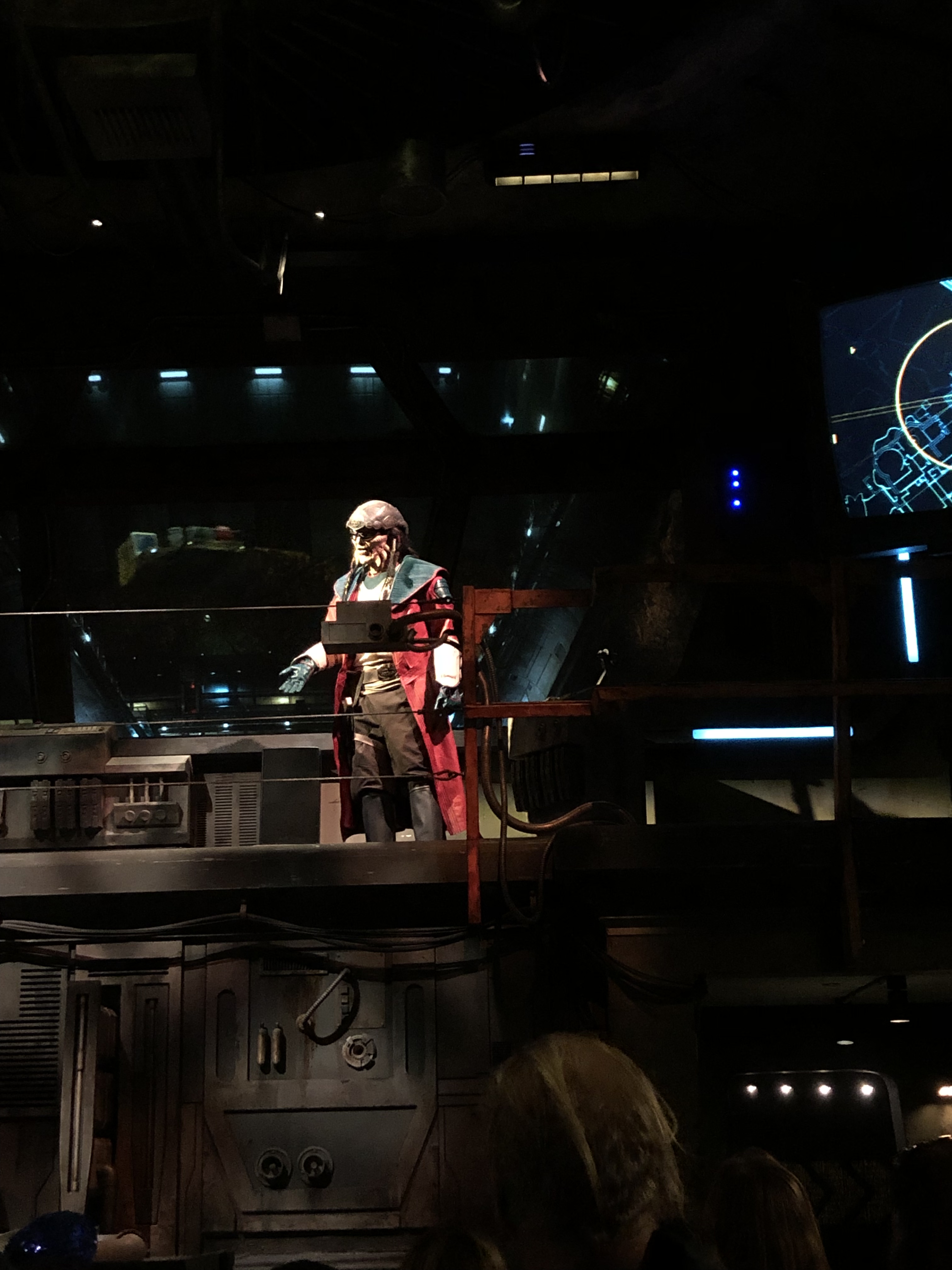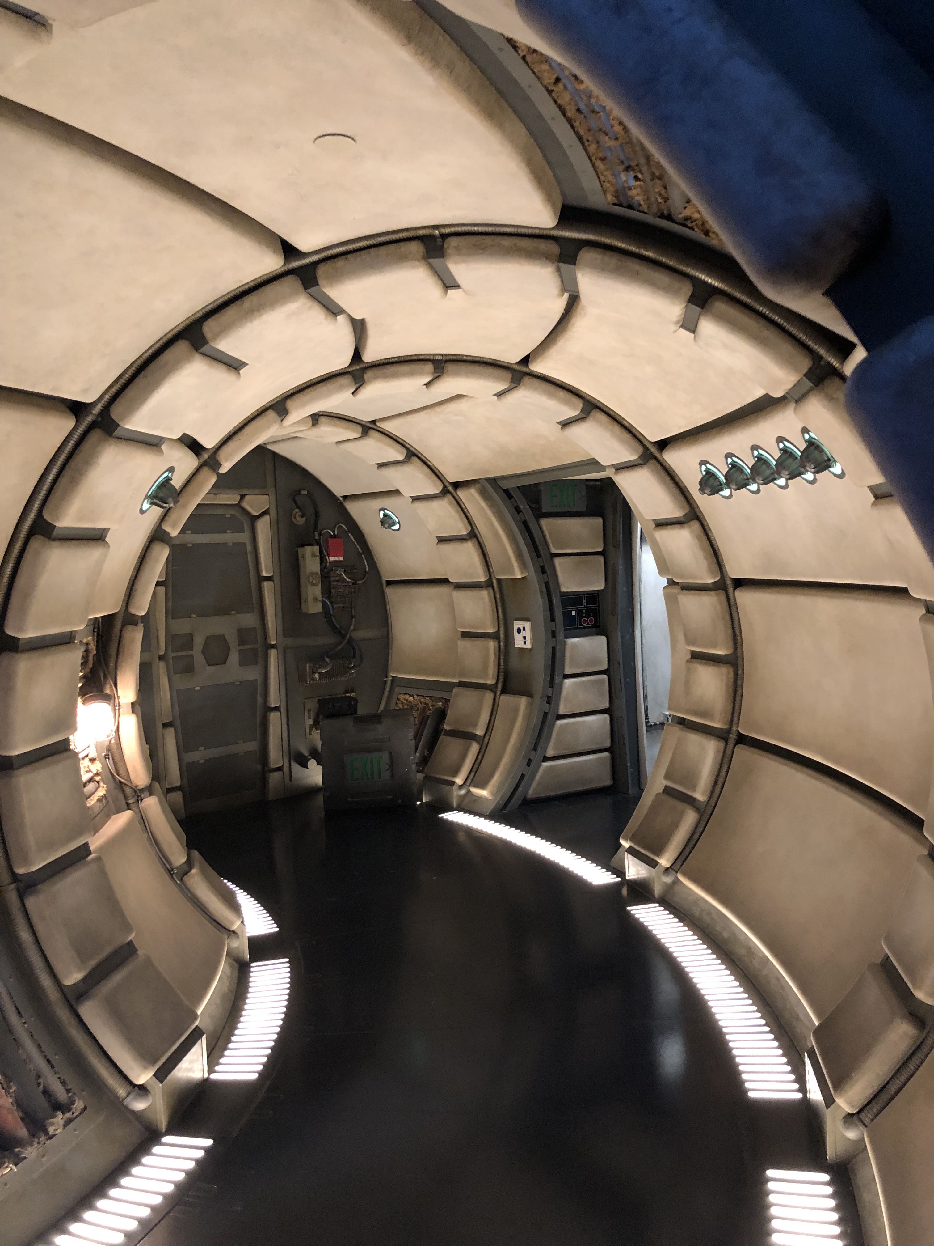 The next section was where you received your roles and boarding colour. You then wait in this awesome room that because I haven’t seen the movies I can’t really describe what it is. Then your group is called and they line you up by role, take away your boarding pass and send you to the final pre show room. From there the doors open and you get to actually ride in the millennium falcon, either as a pilot, gunner or engineer.